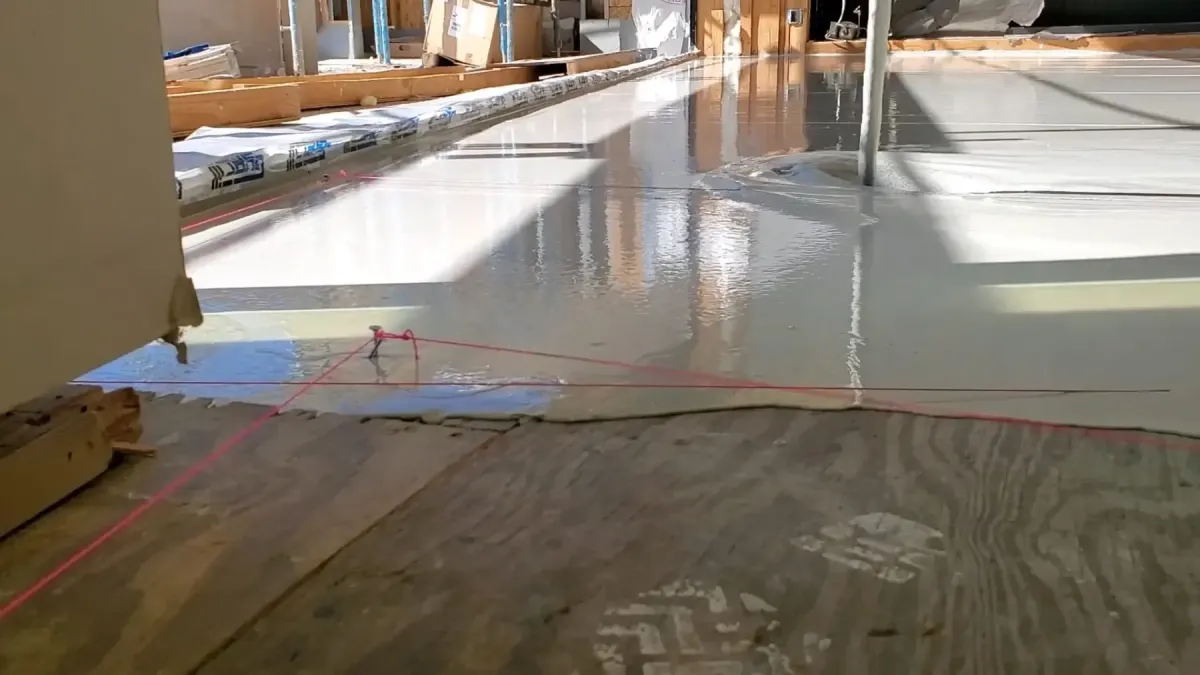 The gypsum underlayment is pumped to the precise depth required and expertly finished to create a flat, even surface that’s ready for flooring.